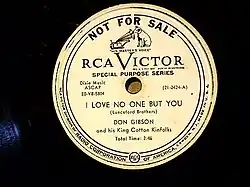 Häufige Wechsel der Plattenfirmen und Bandmitglieder waren nun an der Tagesordnung. Gibsons neue Band hieß ab 1950 Don Gibson & His King Cotton Kinfolks, die bei Steve Sholes für RCA Records vorspielte. Am 17. Oktober 1950 standen sie vor den Mikrofonen des Radiosenders WSOC in Charlotte, North Carolina, unter Produktionsregie von Steve Sholes, der auch eine erstmals in Nashville stattfindende Aufnahmesession am 10. Oktober 1951 überwachte. Erste Erwähnung gab es im Magazin Billboard im Januar 1951, als dort die Single I Love No One But You / Carolina Breakdown (B-Seite war eine Instrumentalaufnahme) in der Country-Sparte für RCA vorgestellt wurde,[3] sich jedoch ebenfalls nicht platzieren konnte. Mit dieser Band trat er 1952 in der von der Radiostation WNOX übertragenen Country-Sendung Tennessee Barn Dance auf, wodurch WNOX auf ihn aufmerksam wurde.[4][5] Im August 1952 wechselte Gibson von RCA zu Columbia Records.[6] Im Jahr 1953 heuerte er den Bluegrass-Fiddler Kenneth Clayton „Kenny“ Baker (* 26. Juni 1926, † 8. Juli 2011) für die Auftritte im Tennessee Barn Dance an, dem er viele Jahre lang angehörte. Kurz danach löste sich seine letzte Band auf, sodass für Studioaufnahmen nunmehr Sessionmusiker rekrutiert wurden.