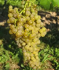 - Die Traube ist mittelgroß (14–18 cm), mitteldicht mit einer zylindrischen Form. Sie haben 1–3 Flügel und Beitrauben fehlen oder sind bis mittelgroß.