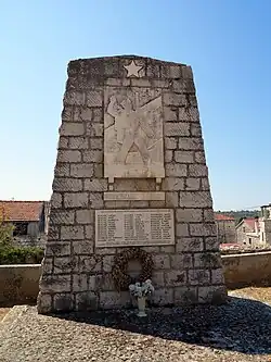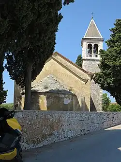 Am Hauptplatz steht ein Kriegerdenkmal der Volksbefreiungsarmee von Josip Broz Tito aus der Zeit der Volksrepublik Jugoslawien. Daneben befindet sich das alte Bruderschaftshaus der Martinverehrer. Auf dem Haus wurde 2010 ein stilisierter „Fußabdruck des hl. Martin“ angebracht, Zeichen der Verbundenheit der Anhänger des Martinskults, der rund 150 Orte in Europa verbindet. Der hl. Martin stammte aus dem pannonischen Sabarien, das heutige Szombathely in Ungarn. Das Haus reicht bis in das 18. Jahrhundert zurück und gehörte einer Schmiedefamilie aus Bosnien.[7] Als das letzte Familienmitglied Ivan Bosna (Mistro Juane Bosna da Spalato) starb, erbte die Bruderschaft vom hl. Martin das Haus. In der zweiten Hälfte des 19. Jahrhunderts diente es als Schulhaus. Ab 1873 wurden landwirtschaftliche Kulturtechniken unterrichtet. Mitglieder der Bruderschaft errichteten 1878 eine Zisterne. 2009/2010 wurde das Haus von der Bruderschaft restauriert und wieder in den ursprünglichen Zustand versetzt.