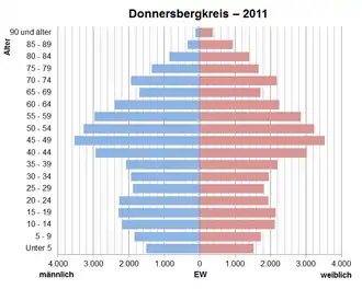 - ↑ Datenbank Zensus 2011, Kreis Donnersbergkreis, Alter und Geschlecht.