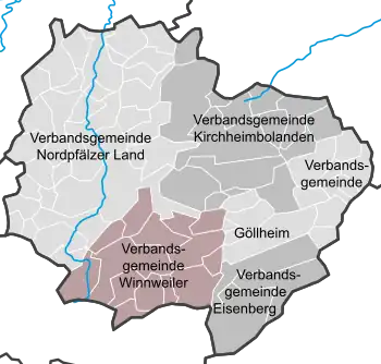 - ↑ Landkreis Donnerbergskreis Gemeindestatistik, abgerufen am 11. September 2025.