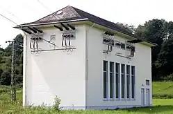 Es handelt sich um eines der wenigen bauhistorisch wertvollen Energieversorgungsgebäude der Region und um eines der jüngsten Baudenkmäler in der Umgebung. Zwischen 1955 und 1956 wurde die Schaltstation nahe der Straße in Richtung Frickhofen errichtet. Sie zeigt Elemente der Neuen Sachlichkeit, etwa die schmalen, hohen Fensterschlitze und die Verwendung von Kabeleingängen und Luftschlitzen zur Fassadengestaltung. Zugleich stellen das Walmdach und die insgesamt an ein Wohnhaus angelehnte Kubatur den Versuch da, sich der regionalen Bautradition anzupassen.