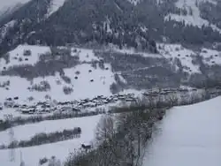 In Österreich ist ein Dorf ebenfalls ein geschlossener Ort mit zehn oder mehr Gebäuden, mit historischer Struktur und gewisser Infrastruktur wie Kirche oder Gasthaus.[9] Kleinere geschlossene Orte und Orte ohne jede Infrastruktur werden als Weiler, Rotte oder Zerstreute Häuser klassifiziert, moderne Neuanlagen als Häusergruppe. Größere Dörfer mit besonderer Bedeutung in geografischer oder wirtschaftlicher Hinsicht können zum Markt erhoben werden.