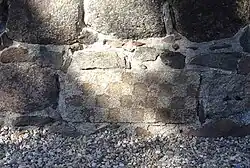 Die beiden im Mauerwerk der Kirche verbauten Schachbrettsteine gelten als Schmuckelemente. Ihre Bedeutung ist allerdings weitgehend ungeklärt. Schachbrettsteine sind an einer Vielzahl von Kirchen dieser Bauzeit zu finden. Ihr Verbreitungsgebiet befindet sich in der Niederlausitz, Märkisch-Oderland, der Neumark, dem Barnim und in der Uckermark. Außerdem treten sie noch in Dänemark auf, insbesondere hauptsächlich in Nordjütland. Sie könnten möglicherweise eine Art Schutzfunktion gehabt haben und durch dänische Baumeister in die Region gelangt sein. Einen schriftlichen Beweis für diese Theorie ist allerdings bislang nicht nachweisbar.[4][5][6]