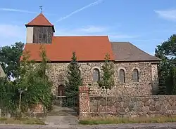 Das Bauwerk entstand im Wesentlichen aus Feldsteinen, die lagig geschichtet und mäßig behauen wurden. Der Chor ist gerade und an der Ostwand leicht eingezogen. Er besitzt einen rechteckigen Grundriss, zwei große Rundbogenfenster an der Südseite sowie ein Satteldach, das nach Osten hin abgewalmt ist. Das Kirchenschiff hat einen rechteckigen Grundriss mit ebenfalls großen Rundbogenfenstern. An der Südseite ist ein großes, ebenfalls rundbogenförmiges Portal. Das Schiff trägt ebenfalls ein Satteldach. Oberhalb erhebt sich ein verbretterter Dachturm mit einer gemauerten Westseite. Im Norden und Westen befinden sich romanische Fenster. An der Nord- und Südseite sind je zwei kleine und hochrechteckige Klangarkaden. Der Turm schließt mit einem Pyramidendach mit Turmkugel und Wetterfahne ab.
