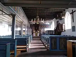 Die Bilder an den Emporen sind wenig sorgfältig mit Szenen aus dem Leben Jesu gemalt. Unter den jeweiligen Bildern befinden sich Angaben zu Kapiteln aus der Bibel, die allerdings nicht immer korrekt sind.