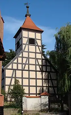 Handwerker errichteten einen Bau aus Fachwerk, dessen Gefach zwischen den schwarz gemalerten Holzbalken aus Lehm und Stroh errichtet wurde. Der Chor ist dabei nicht eingezogen und hat einen Fünfachtelschluss. In jedem Feld ist ein schlichtes, rechteckiges Fenster.