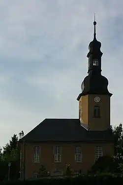 Vor der Reformation brannte die Vorgängerkirche ab. 1783 erfolgte der Abbruch, und in den Jahren 1785 bis 1788 wurde der Neubau der barocken Dorfkirche realisiert. Am 1. Advent 1786 fand die feierliche Einweihung statt.