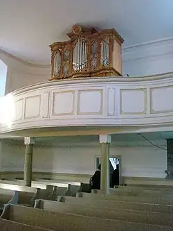 Die Orgel ist ein Werk von Ernst Julius Marx aus dem Jahr 1796 mit neun Registern auf einem Manual und Pedal. Die Basspfeifen sind hierbei freistehend hinter dem Gehäuse angeordnet. Die Orgel war bereits in den Jahren 1859 durch Friedrich Hermann Lütkemüller und 1893 durch Albert Hollenbach überarbeitet worden. Im Jahr 1917 mussten die Prospektpfeifen für Kriegszwecke abgegeben werden. Sie wurden 1923/1924 von der Firma Alexander Schuke (Potsdam) durch Zinkpfeifen ersetzt.[1] 1997 restaurierte die Firma Karl Schuke Berliner Orgelbauwerkstatt das Orgelwerk.[2][3]