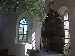 An der Ostwand des Chors ist eine Sakramentsnische. Eine ursprünglich vorhandene Kanzel aus dem Ende des 17. Jahrhunderts ist nicht mehr vorhanden. Die Empore ist mit schlichten, braun gestrichenen Kassetten verziert. Das Bauwerk ist in seinem Innern flach gedeckt.