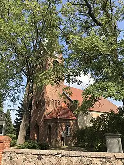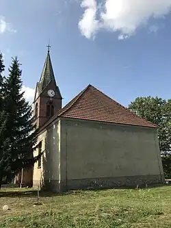 Das Bauwerk wurde im Wesentlichen aus Feldsteinen errichtet, die jedoch zu einem späteren Zeitpunkt verputzt wurden. Über die Lagigkeit und eine mögliche sorgfältige Ausführung kann daher ohne weitere Untersuchungen keine Aussage gemacht werden. Da der Ort ein Geschenk Heinrichs I. an die Zisterzienser war, ist zu vermuten, dass sie auch am Bau der Kirche beteiligt waren. Damit dürfte auch eine sorgfältige Quaderung einhergehen. Die Ostwand ist gerade, nicht eingezogen und zeigt sich im 21. Jahrhundert fensterlos. Am Sockel ist ein umlaufender Rauputz.