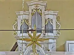Die kleine barocke Orgel von Andreas Nicolaus Francke aus dem Jahr 1730[1] hat sieben Register, verteilt auf ein Manuale und Pedal sowie drei Cymbelsterne. Sie ist auf der ersten Empore über dem stattlichen Kanzelaltar angebracht,[2] der beidseitig von je einem Sakristeischrank flankiert wird.