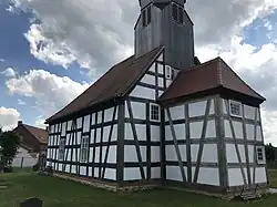 Das Bauwerk wurde aus Fachwerk errichtet. Der Chor ist gerade und nicht eingezogen. An der Ostseite sind zwei hochrechteckige Fenster, darüber mittig ein kleineres, ebenfalls hochrechteckiges Fenster.