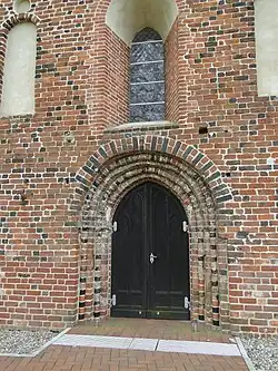 Auf der Nordseite des Chors und des Turmes sind abgetreppte Portale mit eingelegten Rundwülsten angeordnet; das erstere ist mit stumpfem Spitzbogen, das letztere mit Rundbogen ausgeführt. Beide Portale sind mit glasierten Formsteinen geschmückt. Die Raumteile der Kirche sind mit kuppelartigen Kreuzgratgewölben geschlossen. Der Triumphbogen ist ebenfalls mit abgestumpftem Spitzbogen versehen. Insgesamt ist die Kirche der Romanik zuzurechnen, obwohl sie mit ihren Portalen Elemente der Backsteingotik enthält.