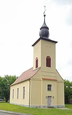 Die Saalkirche wurde zwischen 1651 und 1700 erbaut. Sie wurde 1807 umgebaut und nach 1968 restauriert. Aus dem Satteldach ihres Langhauses erhebt sich im Westen ein quadratischer Dachturm, der mit einer Zwiebelhaube bedeckt ist.