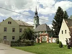 Der Friedhof ist von Resten einer Wehrmauer umgeben, in der mehrere Schießscharten erhalten sind. Das barocke Portal ist mit einem geschweiften Giebel und Kugelzier versehen.