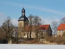 In der Kirche befinden sich viele Grabmäler der Herrschaftsfamilie von Schenck aus dem 16. bis 18. Jahrhundert. Zum Teil stammen diese wohl aus Magdeburg. Bemerkenswert ist der vom Anfang des 16. Jahrhunderts stammende Tetzelkasten. Die Truhe ist aus einem Stamm gefertigt und soll sich im Besitz des Ablasspredigers Johann Tetzel befunden haben.