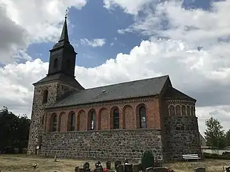 Das Kirchenschiff hat einen rechteckigen Grundriss. Die untere Hälfte entstand aus Feldsteinen, die obere aus Mauersteinen. Die Ostwand ist ebenfalls geschlossen; der gemauerte Bereich sowie der Giebel werden durch Lisenen betont. An der Nordseite des Kirchenschiffs wechseln sich fünf Rundbogenfenster mit vier Blenden jeweils ab. Sie reichen vom Feldsteinsockel bis annähernd unter den umlaufenden Rundbogenfries. Die Fenster sind dabei dreifach getreppt, die Blenden zweifach. Die Südseite ist identisch aufgebaut. An der Westseite sind im unteren Bereich neben dem Turm je zwei Rundbogenfenster.