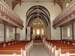 Die Kanzel stammt, wie auch das Kirchengestühl vermutlich aus dem Jahr 1882. An den Nord-, Süd- und Ostseiten des Schiffs sind Emporen eingebaut. Der Taufengel stammt aus dem Anfang des 18. Jahrhunderts und wurde 1992 restauriert.