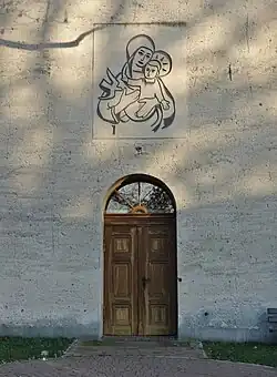 Das Sgraffito schuf der Sohn des damaligen Heimatmalers im Auftrag des (evangelischen) Pfarrers. Hans Zimmermann trug eine Putzschicht auf das Bauwerk auf und gestaltete darin das Relief. Für die Schattierungen nutzte er eine leicht angerußte Schicht. Der Hintergrund des Auftrags ist nicht genau bekannt. Einer Überlieferung zufolge besteht wohl ein Zusammenhang mit dem in der Nähe gelegenen Truppenübungsplatz Klietz, der in der Zeit der DDR von der Gruppe der Sowjetischen Streitkräfte in Deutschland (GSSD) genutzt wurde. Die Bewohner Göttlins erzählten sich: „Wenn die Russen hier vorbeigefahren sind, durften sie zwar nicht aussteigen. Aber sie sollten wenigstens aus den Fahrzeugen heraus einen Blick auf die Maria haben.“[2]. Damit sollte auf die russisch-orthodox geprägte Heimat der Soldaten hingewiesen werden. Im Zuge der Sanierungsarbeiten konnten auch mittlerweile aufgetretene Risse am Sgraffito geschlossen und ein Finger der Maria wieder ergänzt werden.