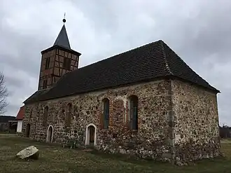 Der Sakralbau wurde nach Angaben des Brandenburgischen Landesamtes für Denkmalpflege und Archäologischen Landesmuseums im 14. Jahrhundert errichtet. Das Dehio-Handbuch äußert sich vorsichtiger und spricht davon, dass der Bau „im Kern vermutlich“ im 14. Jahrhundert errichtet worden sei. Es begründet seine Angabe durch zwei spitzbogenförmige Portale aus Feldstein. Engeser und Stehr gehen bei ihren Untersuchungen auf Grund der gequaderten Steine von einem Bau aus der zweiten Hälfte des 13. Jahrhunderts aus. Dieser dürfte rund 11 Meter lang und etwa 8,10 Meter breit gewesen sein. Sie vermuten auch, dass im 14. Jahrhundert bereits ein erster Westturm aus gespaltenen Feldsteinen errichtet wurde. 1716 erweiterte die Kirchengemeinde den Saalbau nach Osten hin und vergrößerte die Fenster „barock“. Dabei wurde an der südlichen Schiffswand ein neues Portal eingebaut und der ursprüngliche Chor abgerissen. Der Baukörper erreichte damit eine Länge zwischen 26,05 und 26,30 Metern. 1846 wurde das Bauwerk bei einem Brand schwer beschädigt. Handwerker ersetzten daraufhin den Turmaufsatz und erneuerten die Kirchenausstattung. 1998 sanierte die Kirchengemeinde erneut den Turm, im Jahr 2001 die Türen der Südportale.