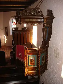 Die Kanzel mit den am Korb gedrechselten Säulen wird inschriftlich auf 1699 datiert.