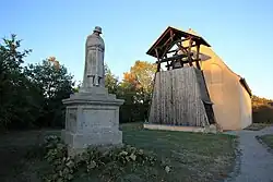 Der Westturm wurde 1954 durch einen hölzernen Glockenturm ersetzt.[3] In diesem befindet sich eine Glocke aus dem Jahr 1578. Nachdem die Glocke durch Baufälligkeit des Turms seit 2019 nicht mehr geläutet wurde, erfolgte in den Jahren 2021 und 2022 die Sanierung des Turms.[4] Im Inneren der Kirche befindet sich ein hölzernes Tonnengewölbe und eine Westempore. Vor der Kirche steht ein Kriegerdenkmal aus den 1920er-Jahren, die darauf stehende Soldatenskulptur ist von 1578.[5]