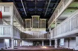 Die Orgel ist ein Werk von Johann Christian Kayser mit 20 Registern auf zwei Manualen und Pedal, das in veränderter Form erhalten ist. Sie wurde in den Jahren 1789–1793 an Stelle eines einmanualigen Instruments mit zwölf Registern von 1650 neu erbaut. Mehrere Veränderungen aus dem 19. Jahrhundert sind überliefert. 1881 wurden durch E. L. Lohse Änderungen an der Disposition vorgenommen. Im Jahr 1917 wurden die Prospektpfeifen für Kriegszwecke abgeliefert. Im Jahr 1939 wurde durch die Firma Barth und Boscher ein Umbau auf Röhrenpneumatik vorgenommen, so dass nur noch ein Teil des originalen Pfeifenwerks in veränderter Form und das Gehäuse erhalten sind. Die ursprüngliche Disposition lautet:[1]