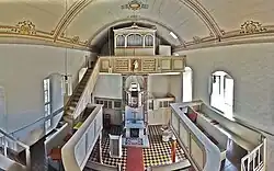 Der Kirchturm bekam 1988 ein neues Kupferdach. Über dem Altar und der Kanzel befindet sich die Orgelempore. Die Orgel wurde 1880 von Guido Knauf gebaut und verfügt über 12 Register, verteilt auf zwei Manuale und Pedal.[1][2]