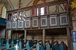 - Der Kirchenkasten ist eine Truhe mit Eisenbeschlägen, sie wurde 1672 gebaut und mit den Stifterwappen der Hanstorfer Gutsbesitzerfamilie Barner bemalt, die sich mit den Oertzen das Kirchenpatronat teilte.