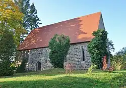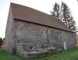 Die Kirche ist ein rechteckiger Feldsteinbau mit Satteldach aus der zweiten Hälfte des 13. Jahrhunderts. Die Saalkirche von 24 m Länge bei gut 12 m Breite hat auf der West- und Südseite gestufte Portale. Auf der Nordseite finden sich ein vermauertes Portal sowie die Fundamente einer früheren Sakristei. Die Fenster der Längsseiten sowie die der Dreiergruppe in der Ostwand sind typische gotische Lanzettfenster. Allerdings wurden sie zum Teil nach unten verlängert. Der Rechteckchor hat in seinem flachen Ostabschluss ein rundes Fenster, einen sogenannten Okulus. Da der Umbau im Wesentlichen den Innenraum betraf, bietet die Kirche ein gutes Bild der ursprünglichen gotischen Kirchen aus der Ostsiedlung in der Mark Brandenburg.