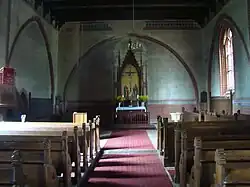 Die Ausstattung der Kirche stammt im Wesentlichen aus dem 19. Jahrhundert und greift den gotisierenden Stil des Bauwerks auf. Der Altaraufsatz enthält ein Gemälde von Theodor Fischer-Poisson von 1868, das eine Kreuzigungsgruppe zeigt.