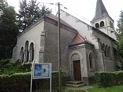 Der Ort selbst gelangte im 19. Jahrhundert in bürgerlichen Besitz und kam 1872 zur Familie Schwabach, die damit auch das Kirchenpatronat übernahm. Auf Initiative des Bankiers Paul von Schwabach rissen Handwerker den marode gewordenen Vorgängerbau ab und errichteten nach Plänen des Architekten Karl Hoffacker in den Jahren 1896 bis 1898 das Bauwerk. Experten vermuten, dass sich Hoffacker dabei von der 1895 fertiggestellten Kaiser-Wilhelm-Gedächtniskirche in Berlin hatte inspirieren lassen, galt die Neoromanik in dieser Zeit doch als „Nationaler Baustil“[2]. Die Kirchweihe fand am 10. November 1897 statt. Nach dem Ende des Zweiten Weltkrieges wurde die Kirchenausstattung weitgehend entfernt und der Triumphbogen vermauert.