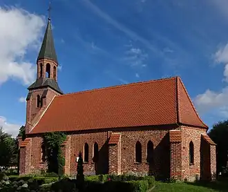 Auf dem umgebenden Friedhof stehen ein Grabkreuz aus dem Jahr 1828 sowie weitere gusseiserne Kreuze aus dem 19. Jahrhundert. Am östlichen Ende befindet sich eine Gedenkstätte für 22 Jugendliche. Sie starben am 26. April 1945, als eine Panzerfaust in den Händen ihres Ausbilders in einem Wehrlager im benachbarten Jeeser explodierte. Die Beisetzung fand am 28. April 1945 statt.