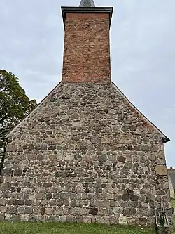 Das Bauwerk entstand im Wesentlichen aus wenig behauenen und lagig geschichteten Feldsteinen. Die Ostwand ist fensterlos, gerade und besteht im unteren Bereich aus unregelmäßig und wenig behauenen Steinen. Vermutlich wurde die Wand 1819/1820 neu errichtet, nachdem die Apis abgerissen wurde. Oberhalb befindet sich ein Giebel aus Fachwerk mit einem leicht nach Süden versetzten, kleinen und hochrechteckigen Fenster.