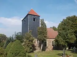 Auf dem angrenzenden Friedhof ist eine kleine neugotische Friedhofskapelle erhalten. In der Nähe befindet sich auch der Taubenturm Krosigk.