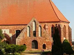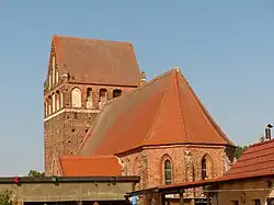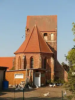 Die Kirche ist eine ursprünglich aus rechteckigem Saal und eingezogenem Chor mit Fünfachtelschluss bestehendes, sorgfältig in Backsteinverband mit Rüstlöchern ausgeführtes Bauwerk aus der Zeit um das Jahr 1300. Beachtenswert ist das spitzbogige Südportal, das umlaufend von Formsteinen gerahmt und mit Krabben und Fialen geschmückt ist, Die spitzbogigen Fenster wurden teilweise später verändert. Der mächtige Westturm war vermutlich bereits ursprünglich vorgesehen, wurde jedoch erst um das Jahr 1500 ausgeführt; das Glockengeschoss ist mit segmentbogenförmigen Schallöffnungen zwischen Blenden versehen, die beiden Giebel mit ansteigenden spitzbogigen Blenden.
