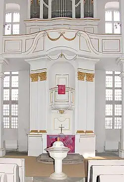 Die Orgel ist ein Werk von Johann Christian Kayser aus dem Jahr 1789 mit 18 Registern auf zwei Manualen und Pedal. Im Jahr 1902 baute Johannes Jahn drei streichende Register an Stelle von Quinta 2 2⁄3′, Quinta 1 1⁄2′ und Sifflöt 1′ ein. Im Jahr 1938 wurden die entnommenen Register durch Alfred Schmeisser rekonstruiert und die originale Disposition wiederhergestellt.[2] Die Orgel wurde in den Jahren 1964 und 2008 durch die Firma Eule Orgelbau Bautzen restauriert. Die Disposition lautet:[3]