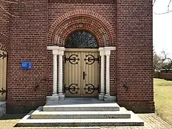 Der Westturm ist quadratisch und gegenüber dem Schiff stark eingezogen. Er kann durch ein großes Rundportal von Westen her betreten werden. Dieses ist mit zwei gekuppelten Säulen verziert, die sich durch ihren weißen Anstrich deutlich vom übrigen Baukörper abheben. Darüber sind drei Rundbogenfenster. An der Nordseite ist ein weiterer Anbau mit einer Pforte an der Westseite. Im mittleren Geschoss befindet sich eine schmale Rundbogenöffnung, darüber eine Turmuhr. Es folgt das leicht zurückgesetzte Glockengeschoss. Dort sind an jeder Seite zwei gekuppelte Klangarkaden, darüber ein Fries sowie die geknickte Turmhaube, die mit einer Turmkugel und einem Kreuz abschließt.
