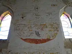 Das Innere der Müsselmower Kirche zeichnet sich durch Bescheidenheit aus. Die Wände mit den barocken Wandmalereien hatte man im 19. Jahrhundert mit vier weißen Kalkschichten überstrichen. Teile davon konnten von 2001 bis 2008 durch studierende Restauratoren der Fachhochschule Hildesheim freigelegt werden, darunter Das Jüngste Gericht. Die Fenster- und Türlaibungen waren mit ziegelrotem Mauerwerk imitiert.[13] Auf dem Türsturz der südlichen Eingangstür ist die Jahreszahl Anno 1601 eingeritzt.