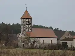 Der Ost- und Westgiebel sind in Fachwerk ausgeführt. Über dem Westgiebel befindet sich der ebenfalls in Fachwerk ausgeführte Kirchturm. Dessen Schallöffnungen weisen in alle vier Himmelsrichtungen. Eine Turmuhr gibt es nicht. Das Pyramidendach des Turms ist mit roten Biberschwänzen eingedeckt. Auf der Spitze befindet sich die Wetterfahne mit eingearbeiteter Jahreszahl 1729 und die Turmkugel. Das Satteldach des Langhauses ist ebenfalls mit roten Biberschwänzen eingedeckt.