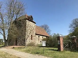Daran schließt sich das Kirchenschiff an. Es ist rund 11,30 m lang und rund 9,90 m breit. Im östlichen Teil sind die Feldsteine noch grob gequadert, während sie im übrigen Baukörper eher gut behauen wurden. An der Nordseite finden sich zwei gedrückt-segmentbogenförmige Fenster, deren Laibung mit Mauersteinen ausgebessert wurden. Mittig sind die Reste eines kleinen Fensters aus der Bauzeit zu erkennen. Ebenso schneidet das westlich gelegene Fenster den Bogen eines weiteren, ebenfalls zugesetzten Fensters. Es ist daher denkbar, dass das Schiff ursprünglich drei Fenster auf der Nordseite besaß. An der Südseite zeigt sich ein ähnliches Bild. Auch hier sind die Reste der romanischen Fenster erkennbar, dazwischen zwei große Fenster. Leicht nach Westen ausmittig ist eine zugesetzte Gemeindepforte mit sorgfältig behauenen Gewände- und Bogensteinen.