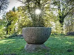 Auf der Westseite der Kirche, vor dem Turm, befindet sich ein romanisches Taufbecken aus dem 13. Jahrhundert, sicherlich das mit Abstand älteste bewegliche Stück der gesamten Anlage. Es wurde erst 2003 wieder an seinen ursprünglichen Platz gesetzt.