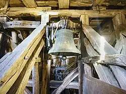 Im Turm befinden sich zwei Bronzeglocken: Die größere Glocke (Durchmesser: 1040 Millimeter) mit dem Schlagton f1+3 wurde im Jahr 1625 von dem Gießer Joachim Gravert in Wismar gegossen, die kleinere Glocke (Durchmesser: 417 Millimeter) mit dem Schlagton h2+7 ist aus dem Jahr 1813 und trägt die Inschrift „PENTZIN 1813“.