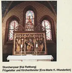 Der gotische Schnitzaltar entstand in der Zeit um 1478 bis 1480. Im Hauptfeld ist die Pietà abgebildet. Die Darstellung von wird vier frühchristlichen Märtyrern umrahmt. Links ist Onophrios der Große sowie Valentin von Terni zu sehen. Im rechten Feld sind zwei gekrönte Jungfrauen abgebildet, vermutlich die Heilige Dorothea und Barbara von Nikomedien. Die Rahmung und das Gesprenge stammen aus dem Ende des 19. Jahrhunderts.