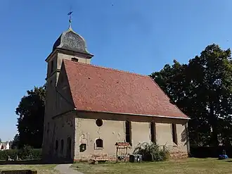 Im 18. Jahrhundert stand im Ort eine Fachwerkkirche, die mittlerweile baufällig geworden war. Sie wurde „nebst Thurm ist Juli 1908 für 500 M auf Abbruch verkauft und abgerissen“[1]. Die Gemeinde beauftragte daraufhin den Maurermeister Richard Patyke aus Dahme/Mark mit einem Neubau. Dabei entstand auch der Kirchturm, der – verglichen mit ähnlichen Bauwerken der Region – ungewöhnlich asymmetrisch im Westen der Nordseite angebaut wurde. Die Ausmalung erfolgte durch den Kunstmaler Fey aus Friedenau. Am 28. August 1909 fand unter der Leitung des Generalsuperintendenten Köhler die Kirchweihe statt.