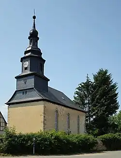 Äußerlich zählt das Gebäude zu den eleganten Thüringer Rokokokirchen. Wirkungsvoll erhebt sich ein beschieferter oktogonaler Dachreiterturm mit doppelt geschweifter Kuppel, Laterne und Zwiebelhaube an der Ostseite über dem Altarraum.