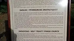 Die Schmolsiner Kirche war von der Reformation bis 1945 über dreihundert Jahre lang ein evangelisches Gotteshaus und nach 1945 zugunsten der Katholischen Kirche in Polen enteignet, die sie neu weihte und ihr den Namen Kościół Trójce Świętej (Dreifaltigkeitskirche) verlieh.