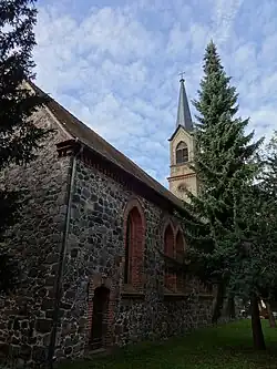 1848 kam es im Dorf zu einem Brand, bei dem der Sakralbau weitgehend zerstört wurde. Dokumente, die Aufschluss über den Vorgängerbau geben könnten, sind bislang nicht bekannt. 1860 errichtete die Kirchengemeinde auf seinen Fundamenten einen Neubau, der nach Westen hin um rund drei Meter verlängert wurde. Die Kirchenausstattung wurde ersetzt; im Jahr 1868 eine Orgel eingebaut. Das Kirchenpatronat lag zu dieser Zeit bei derer von Thümen, ab 1878 in die Familie der Barone von Brucken. Eine der Töchter, Elisabeth von Brucken, heiratete den Hauptmann im Königsgrenadierregiment Friedrich Wilhelm Graf von Lüttichau. Er fiel im Ersten Weltkrieg. Zu seinem Gedenken hängt an der Ostseite des Bauwerks ein Epitaph. 1926 erhielt das Bauwerk zwei neue Glocken. Deren Kirchweihe nutzte die Gemeinde, um auch die nunmehr über 50 Jahre alte Orgel einzuweihen.