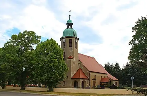 Südlich der Kirche befindet sich auf dem Dorfanger ein ebenfalls unter Denkmalschutz stehendes Kriegerdenkmal für die gefallenen Dorfbewohner des Deutsch-Französischen Krieges (1870/71) aus dem Jahre 1879. Es zeigt auf einem gestuften Sockel stehend die griechische Siegesgöttin Nike.[11][18]